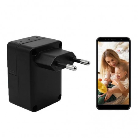 Mini cámara espía oculta en cargador profesional para ver imágenes en directo desde el móvil con detección de movimiento y micro